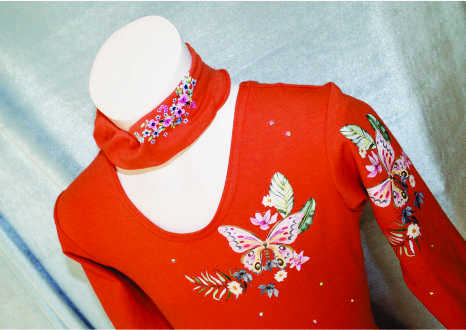 dres s tiskom metulja, krilce prišito na dres. Sestava